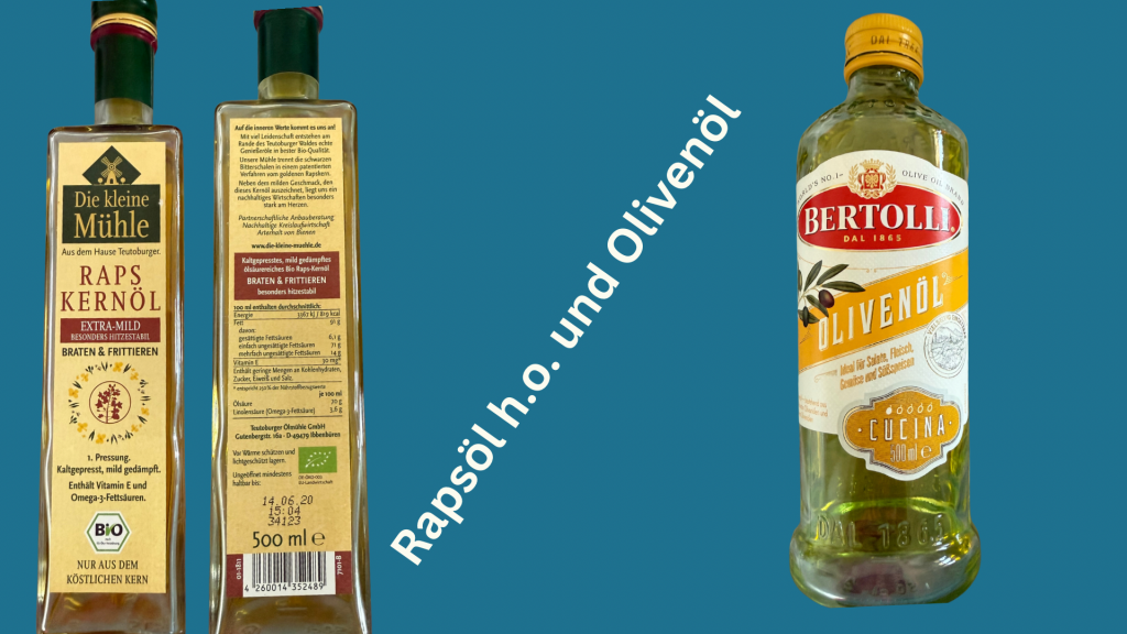 - Rapsöl h.o. und Olivenöl hell abwiegen und alle Öle in ein sehr großes Plastikgefäß geben (ich nehme dazu einen 3-Liter-Messbecher). Was es bei dem Rapsöl h.o. auf sich hat, das findest du hier. Deine 1. Seife wird nicht ranzig werden, wenn du Rapsöl h.o. verwendest. Mit normalem Rapsöl könnte dies bei der Menge ansonsten geschehen.